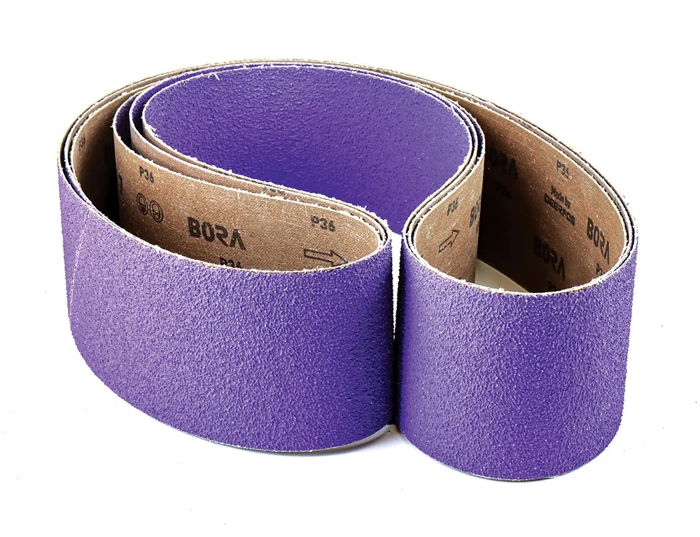 Керамичната лента Bora 3 е изработена от висококачествена керамична шкурка от ново поколение. Използвана за широк спектър от приложения с по-дълъг експлоатационен живот. Предназначени за премахване на дълбоки драскотини, ръжда, оксидация и заварки. Подходящи за декоративен финиш или грубо шлайфане.